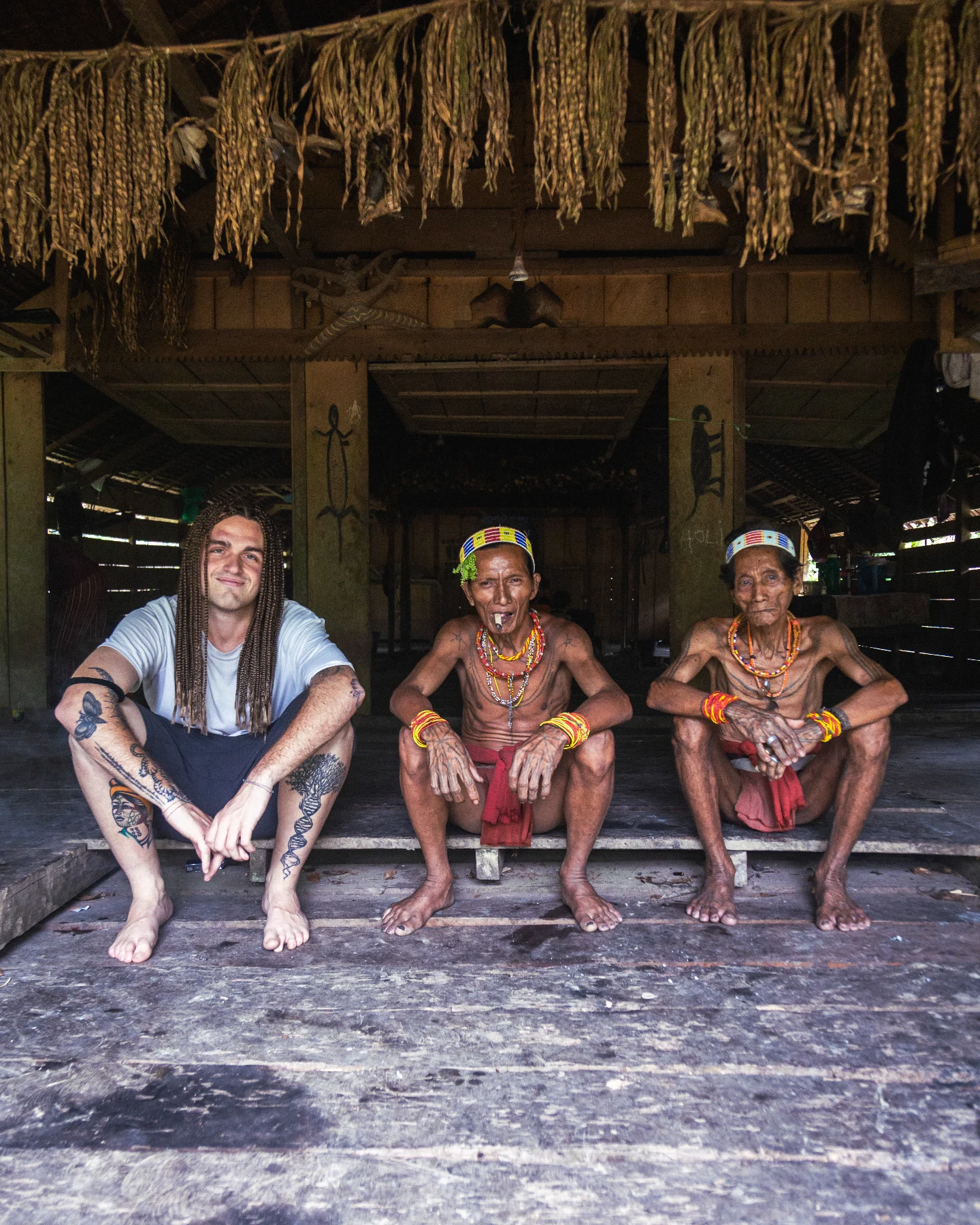 Las casas tradicionales, llamadas Uma, no son viviendas individuales sino espacios colectivos. Varias familias comparten el mismo techo, el mismo fuego y el mismo ritmo diario. No hay compartimentación del tiempo ni de las tareas. Todo ocurre en común. La organización social, los rituales, la medicina tradicional y la alimentación dependen directamente del conocimiento del entorno. Las caminatas por la selva Mentawai no siguen senderos evidentes; se avanza leyendo el suelo, las hojas, las huellas. La caza se realiza con arco, flechas y trampas simples, y no siempre tiene éxito. En esta cultura, volver sin nada no se considera un fracaso, sino parte del equilibrio natural.